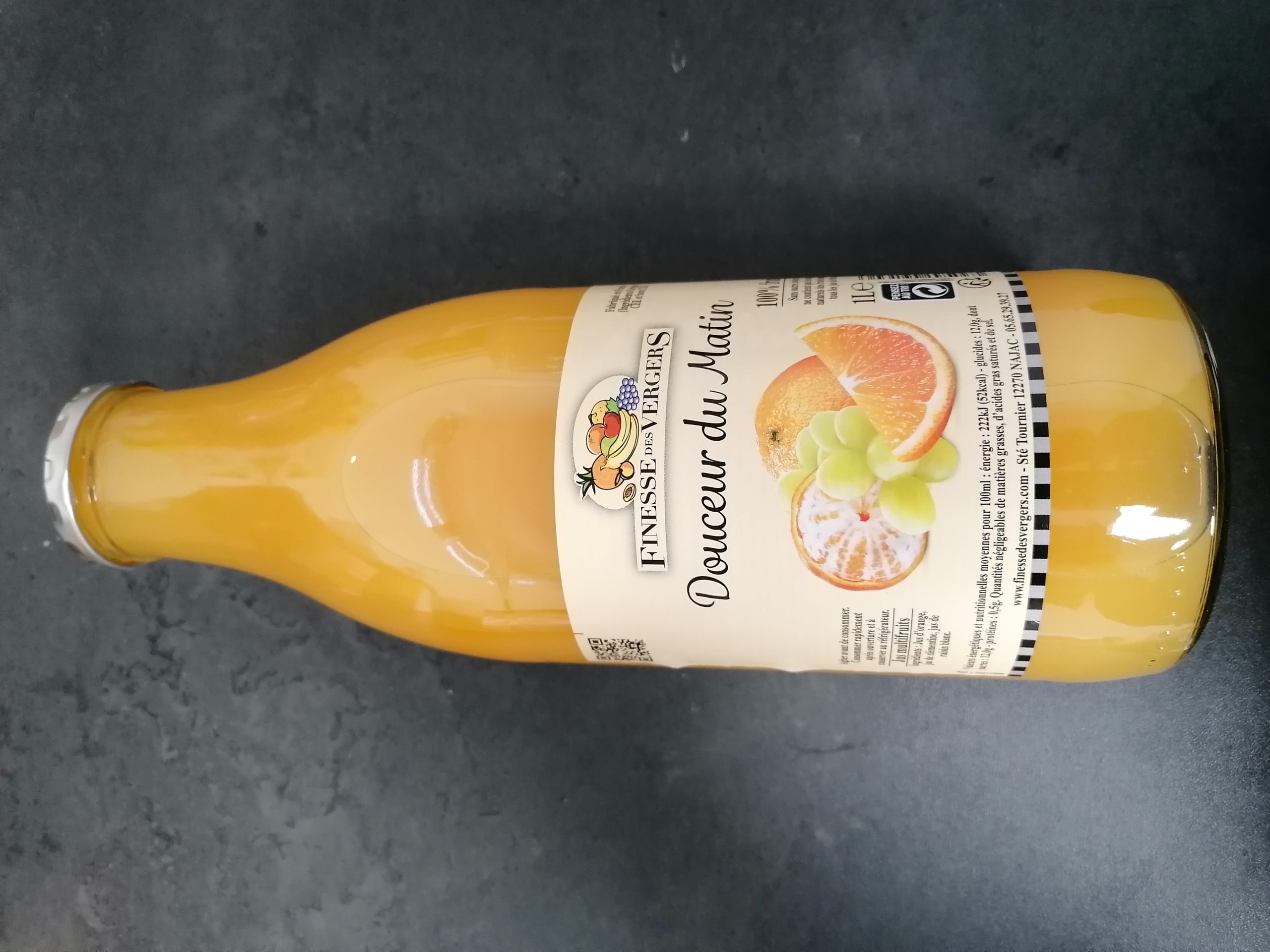 Melange de jus d’orange, jus de clementine et jus de raisin blanc